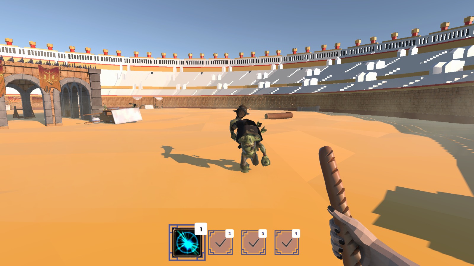 The player takes the role of a mage prisoner seeking freedom in this fantasy world, where they will have to fight against monsters in a magic colosseum, defeating everyone and claiming their freedom.